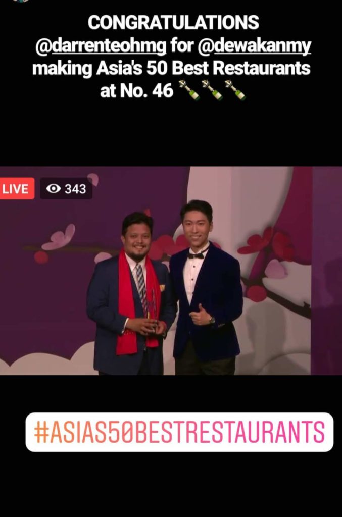 Ranking 46th, owner and chef Darren Teoh was on hand at the Wynn in Macau, where the ceremony took place, to receive the honors. Dewakan also took top gong in the Best Restaurant in Malaysia category.