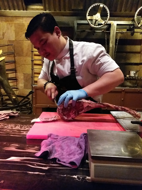 The evening we visited Vantador, the gentleman grilling was not the glamorous Argentinian man whose face graces the restaurant’s website. However, someone must have told him that a couple of ruffians just ordered the most expensive steak he had in the joint because he came out to eyeball us.