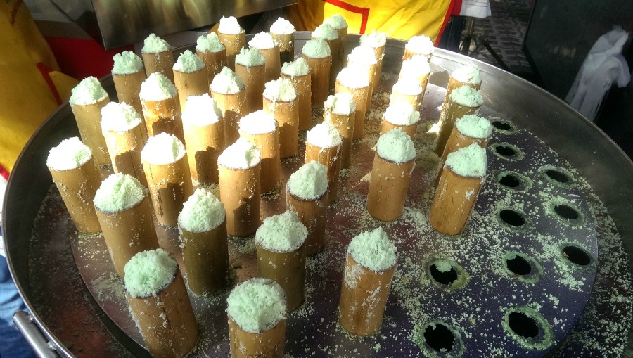 If you’ve got a sweet tooth, then you must give the putu bambu a try. Located at the Kampung Baru bazaar, this sweet snack is made with a combination of pati pandan and gula melaka, and it is served with fresh coconut shreds.