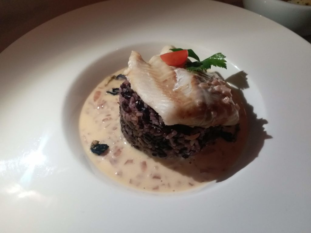 Reader, we took on the fish (RM38), and it was executed with finesse. Poached in a flavored water that included, and was not limited to, wine and herbs, it absorbed these aromas without overpowering the delicate nature of the white fish fillet. Served on a bed of black rice, and a cream sauce, it was perfect, light, and precisely what we would order again when we return for dinner.