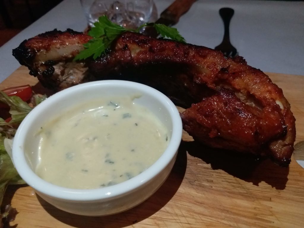 Our date tackled the pork rib (RM46), impressively blistered and shining. It was curried, we were told.
