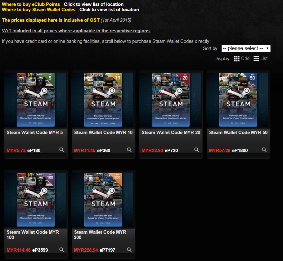 Online transactions using credit or debit cards issued by Malaysian banks for purchasing digital copies of games online should also not carry a GST charge. However, third-party services like EClub, which sells Steam Wallet codes for those without credit cards, or are unwilling to have their credit card statements show online game purchases (spouses can be unforgiving towards Hearthstone binge-buying) now carry the extra 6% into the total price of their products: