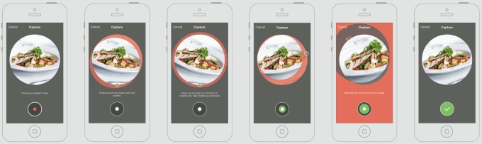 As you revolve your camera around a dish, the app takes a quick succession of photos, and automatically knits them together. The end product? A single, interactive image that the user can swivel around for a 360-degree view.