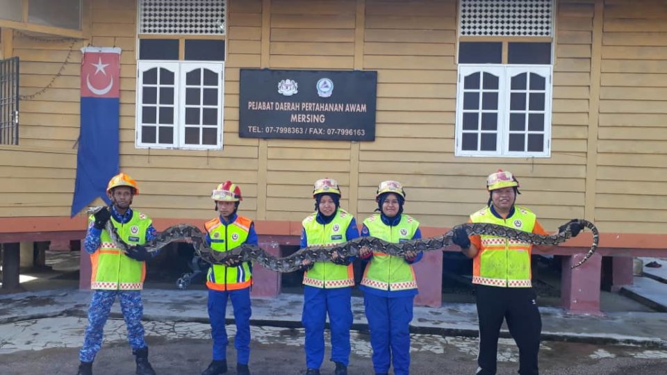 Civil Defence Force (APM) officials from the Kampung Air Papan Tengah branch near Mersing confirmed that they captured an 80-kg, 16-foot python on January 1st that had been vexing locals.