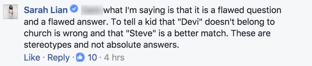 Lian maintains that it shouldn’t have been a question posed to kids in the first place: