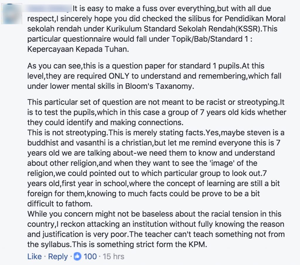 According to Lian, her friend’s daughter — a student at Sekolah Kebangsaaan Taman Megah — sat for a paper that posed a pretty questionable question, in which she had to match people’s names with various places of worship.