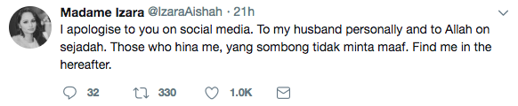 Feeling pressure from a generally salty public who Raya celebrations were perhaps soberer, she then apologized for her post, saying that she was simply overwhelmed when she met her hero. She extended her apologies to the PM’s family, after the pictured stirred online controversy.