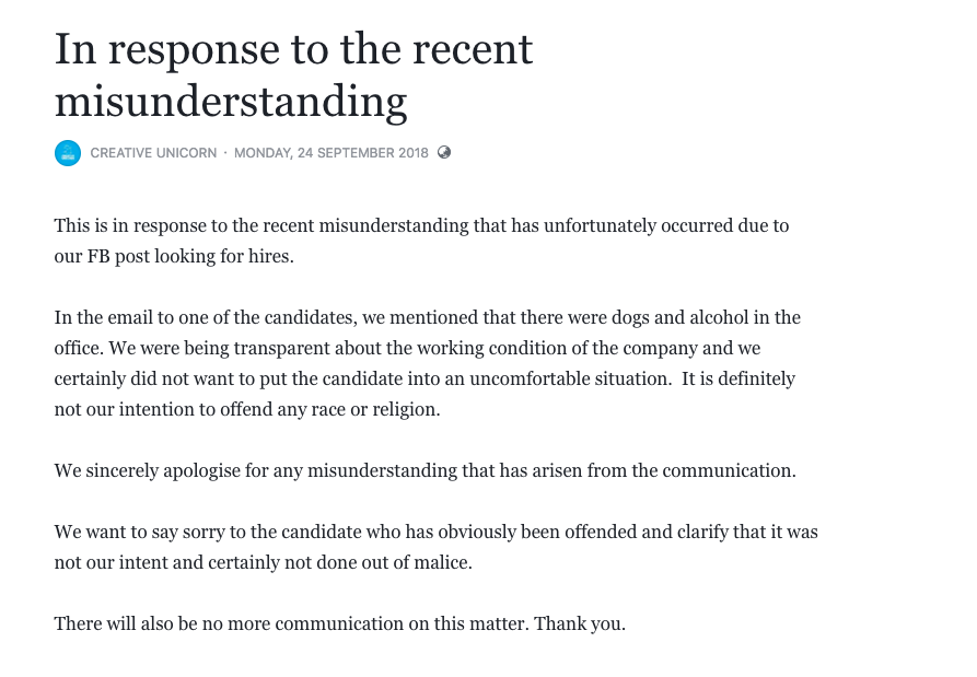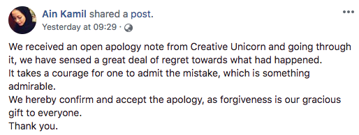 After the post went viral, and online backlash ensued leading Creative Unicorn to issue a response.