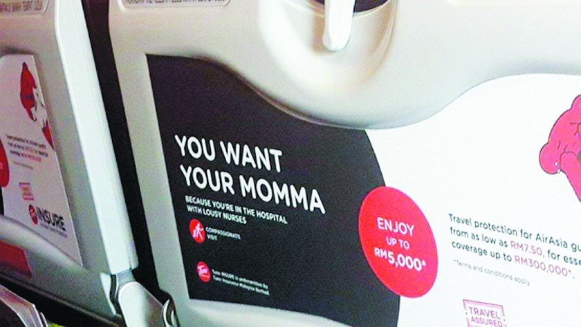 The ads are for Tune Insurance, a sister company of Air Asia, with a tagline saying, “You want your momma, because you are in the hospital with lousy nurses”.