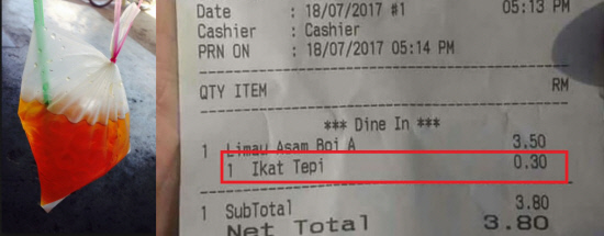The stall owner, known on Facebook as Nita Saidi, took to the social media site to explain herself. She told netizens that under the current economic climate, 30 sen was nothing to consumers, but a necessity for her to pay the costs of the plastic baggie and tie to take away a drink.