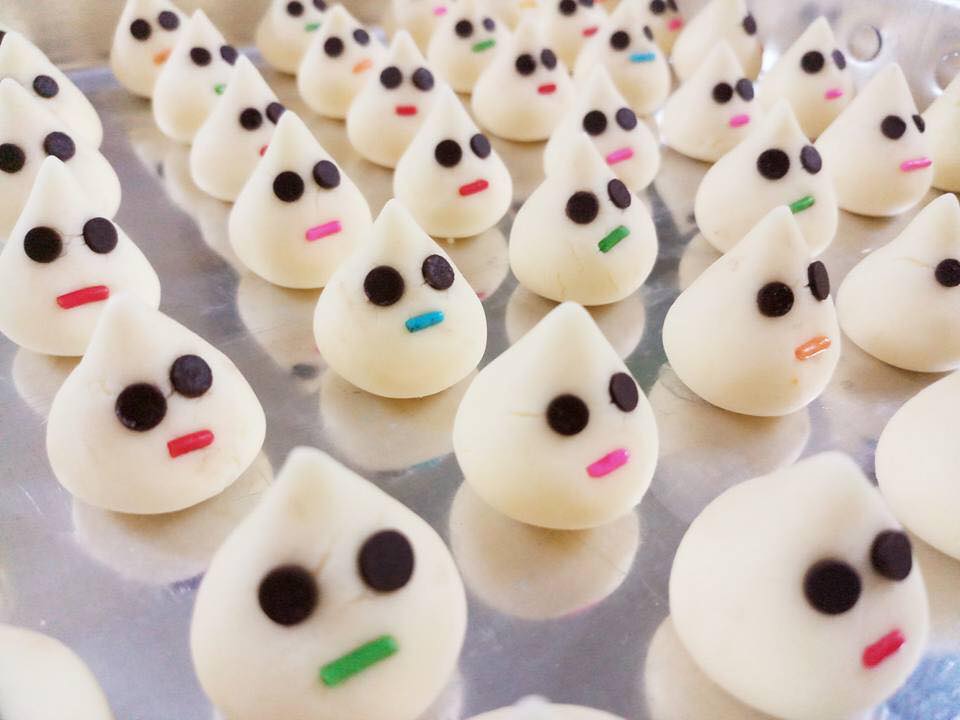 Mix together and shape into lil’ aliens. Use chocolate chips as the eyes, and a sprinkle for the mouth.
