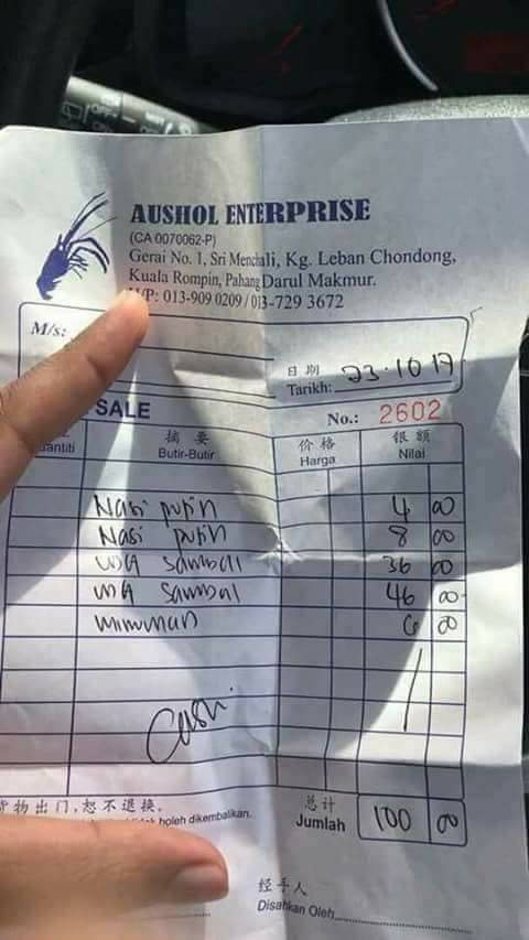 The meal occurred at Aushol Enterprise, in Kuala Rompin, Pahang.