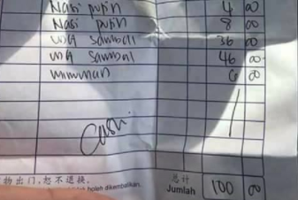 It comes as no surprise then that a photo of a simple meal of rice, prawns and squid for two, along with the receipt that totaled RM100 (US$25), has gone viral on Facebook with nearly 1,000 shares. Everyday citizens are baffled as to how two prawns a piece and scant servings of squid could come to RM50 per person. This was not a fancy restaurant, but the plastic tables and chairs type of establishments that we see all over the country.