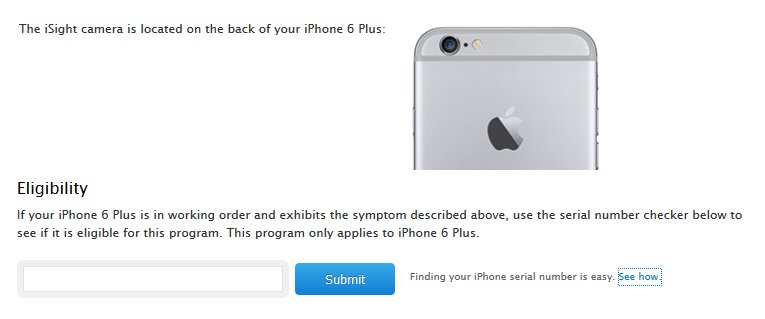 Apple telah mengaku, terdapat segelintir kecil telefon pintar keluaran mereka, iPhone 6 Plus mengalami kecacatan pada kamera belakang, yang digelar iSight. Kecacatan ini akan mengakibatkan gambar yang diambil, kelihatan kabur.