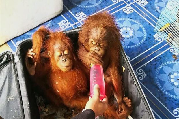 Veterinary doctors say the orangutans were less than 6 months old, and had to be taken to a shelter for care.
