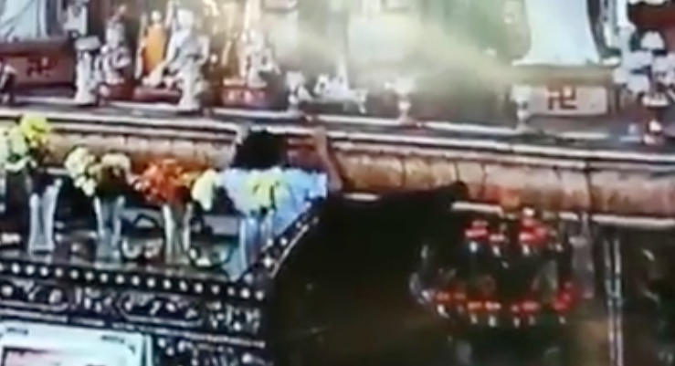 The clip shows the woman giving the man a boost over the two-meter tall altar to grab the statue. He then promptly shoved the Buddha into a black bag the woman then carried out.