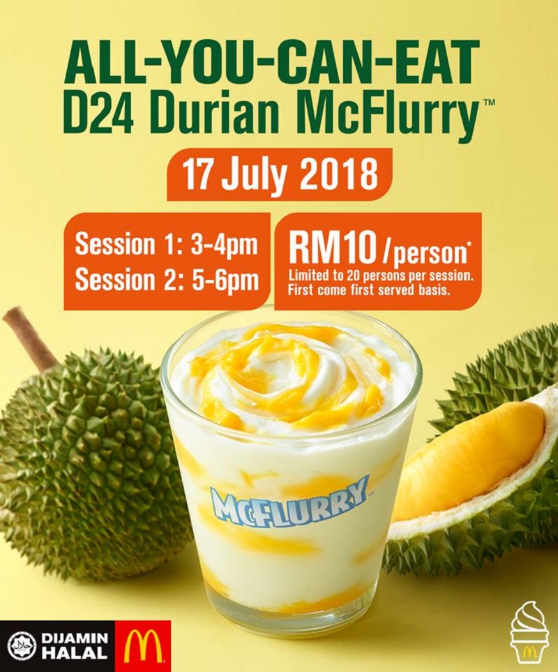 If eating the sweet, sweet durian flesh is getting too boring for you, take note: Tomorrow, McDonald’s outlets across Malaysia will be holding an all-you-can-eat D24 Durian McFlurry bonanza.
