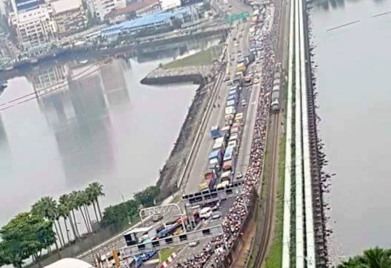 Fortunately, no one was hurt or trapped under the fallen structure. Unfortunately, it caused a massive traffic jam — bad enough for the Immigration & Checkpoints Authority (ICA) to issue a statement urging the public not to use the Tuas Checkpoint. According to Facebook user Suthen Shemu’el, the collapse prompted the authorities to shut down the car lanes.