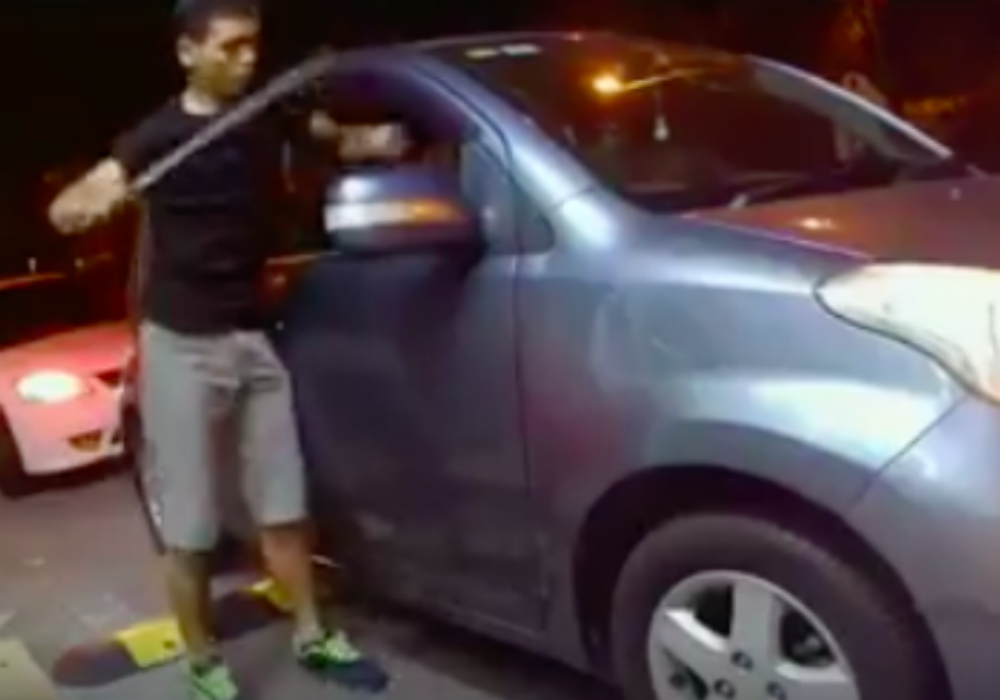 Suddenly, a man in a black T-shirt and grey shorts was seen exiting the Honda Civic and rushed over to the Myvi while brandishing a long parang.
