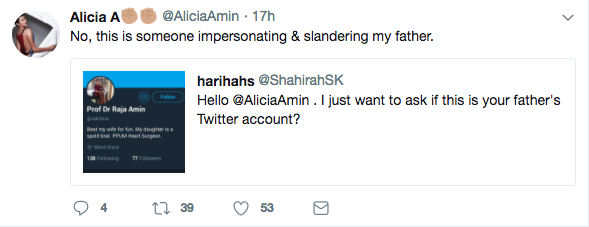 To her credit, Amin has come out swinging, complaining to the micro-blogging site of the impersonation and slander, while also stating via Instagram that she will encourage her father to pursue the full extent of the law.