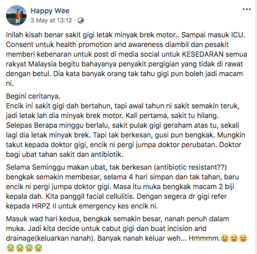 Dr. Wee Sin Hua, a Kota Baru-area dentist, took to his Facebook account to issue words of warning for his followers in seeking home remedies over medical advice: The outcome could be deadly.