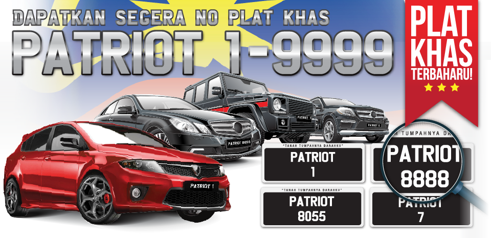 In an effort to “foster patriotism and unity among the multiracial Malaysian society”, NGO The Malaysian National Patriot Foundation (YPNM) is auctioning off special PATRIOT license plates, with the full authority of the Road Transport Department (RTD) backing it up.