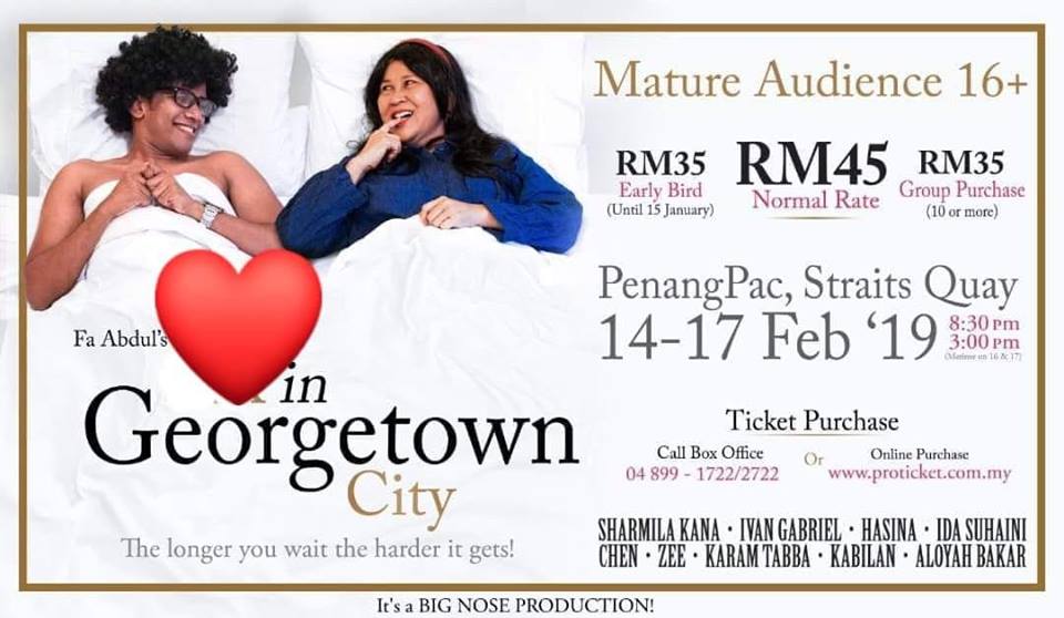 Unfortunately, for Penang director and playwright Fa Abdul, this means that she’s had to change the name of her Valentine’s Day weekend production of Sex in Georgetown City to … Love in Georgetown City conservative outcry.