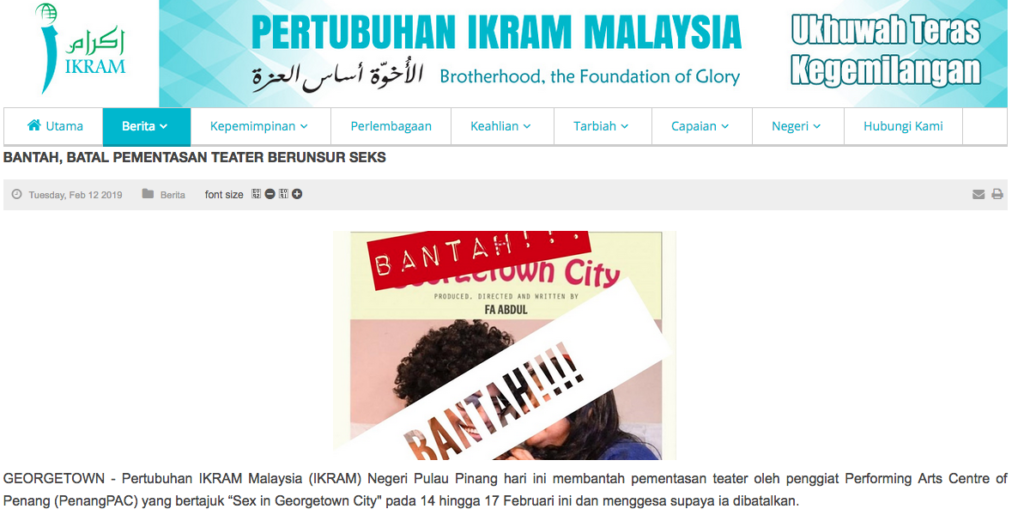Several police reports were filed after publicity for the play went up in and around Penang island, with many angered over a play that had yet to make it to the stage at the Performing Arts Center of Penang (PenangPAC).