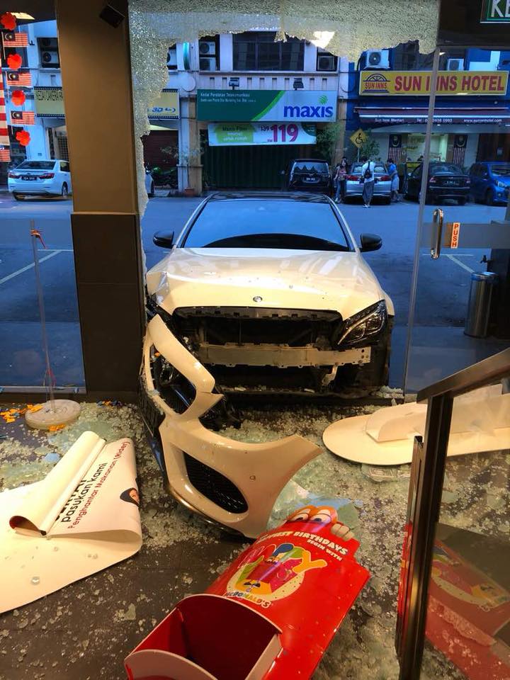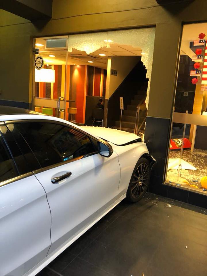 An early morning start for one Mercedes driver ended in a headache after the 40-year-old man accelerated his car right into a Kuala Lumpur-area McDonald’s at 6am yesterday.