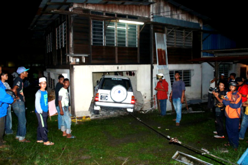 In the 10.45pm incident, Mat Rashid Mat Shariff was reportedly sleeping on the sofa when a Suzuki Vitara crashed through the wall of the living room.
