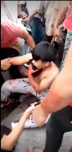 Video at the scene show the victim dazed but conscious, surrounded by onlookers, one of whom decided to film the events. Other clips show a suspect being restrained on the ground.