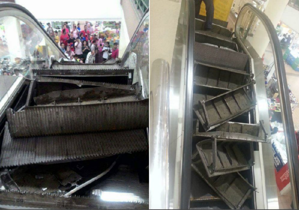 Shoppers at a mall in Pandan Indah were stunned when one of the escalators in the shopping center suddenly exploded without warning.