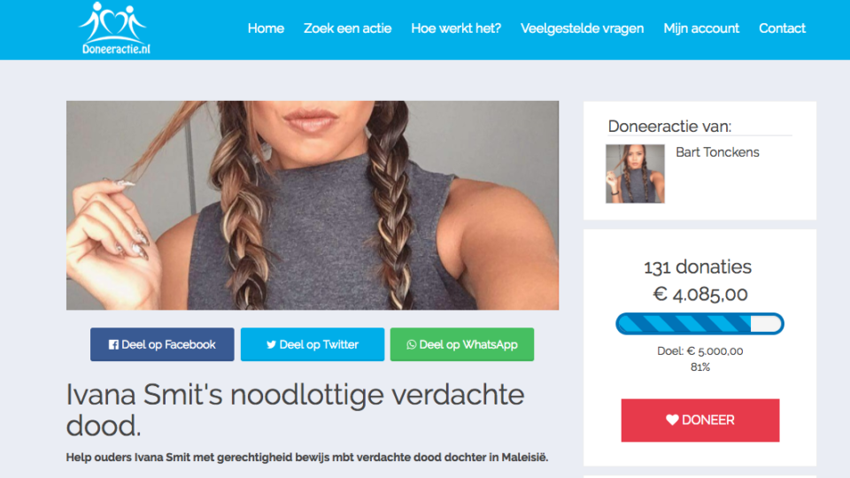 Information on the crowdsourcing site asks the public: “Please help the Smit family to find out the true facts about the tragic death of their daughter, sister, and niece, Ivana Smit.”
