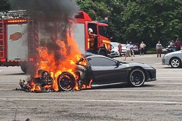 On Saturday, a Ferrari spontaneously burst into flames at Jalan Kebun Bunga in George Town, drawing a huge crowd of on-lookers because, hey, a burning supercar is big news.