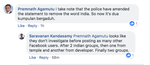 However, many netizens were angered by the Royal Malaysian Police’s initial statement on the incident, which had referred to the factions as “two groups of Indians,” as opposed to simply “two groups.”