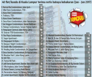 A worrying report from our Fire and Rescue Department: 40 high-rise residential buildings in metropolitan Kuala Lumpur, and seven more in other cities across the country, have been called “ticking time bombs” for high-risk fires.