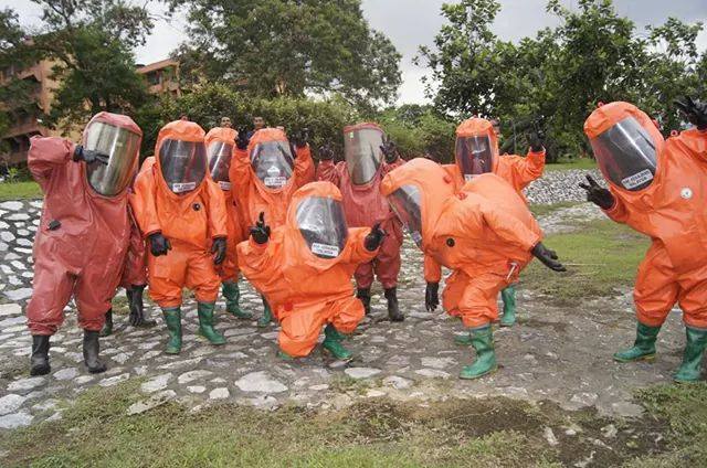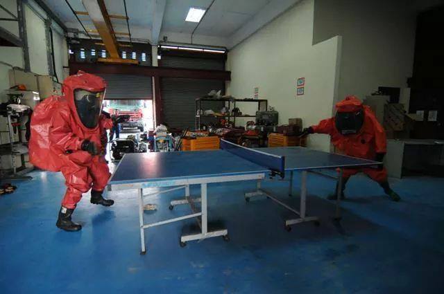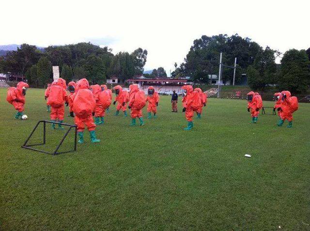 If there’s ever a chemical leak at your local toxic treatment plant, at least you’ll be safe in the knowledge that Malaysia’s firemen are well-prepared … to have fun in hazardous material (Hazmat) suits.