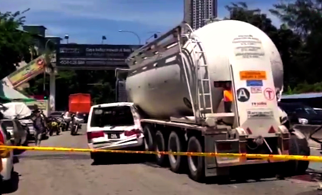 The Star Online reports that the accident at Jalan Tanjung Tokong in George Town involved a lorry, a 20-tonne tanker, two Mercedes cars and a van. It reportedly caused a two-hour traffic jam from Batu Feringghi to all the way into the city.
