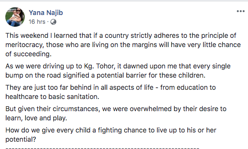 After taking time out to spend with less fortunate children in Malaysia (a commendable thing), Nooryana shared photos, and this statement: