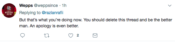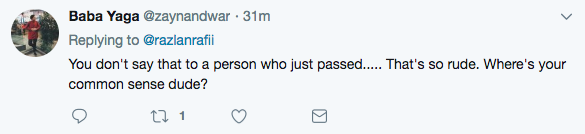 Yes, former Federal Territories Umno chief Razlan Rafii has one thing to say of the untimely death of his fellow politico, responding to a Tweet from the deputy International Trade and Industry minister, who tweeted of Ng’s passing. It went loosely along these lines: