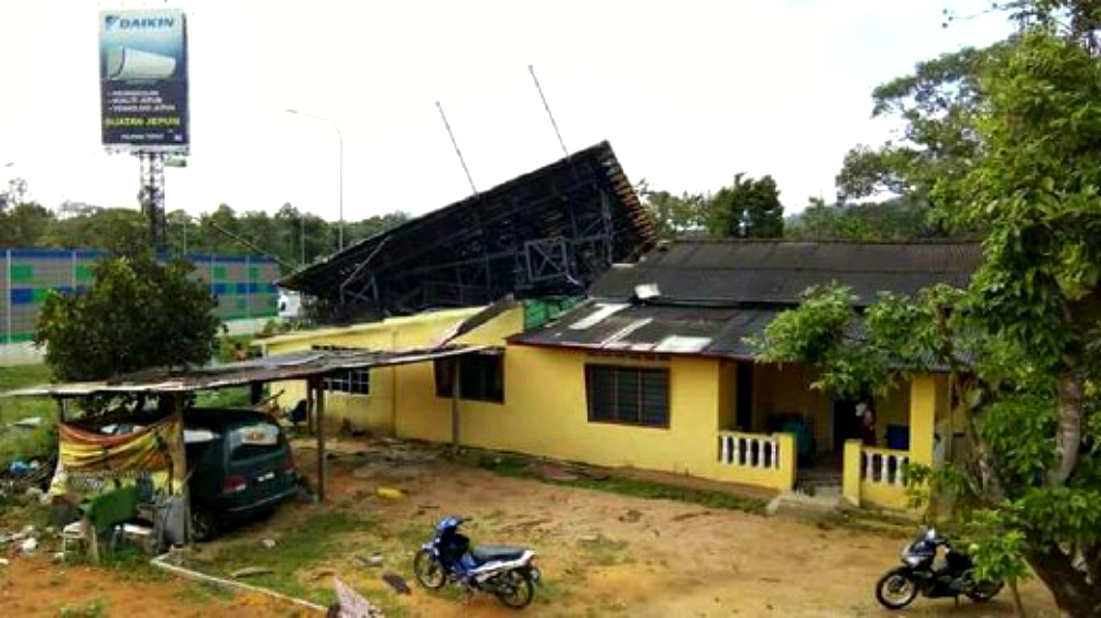A 17-year-old girl was injured when a billboard fell on her house in Kampung Pelegong, Labu.