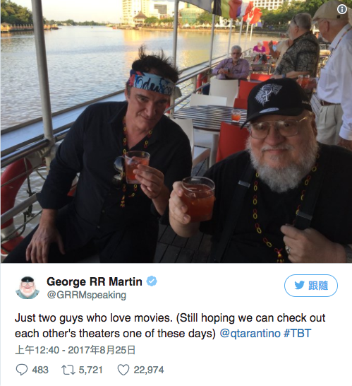 Malaysian cinephiles and Game of Thrones lovers got the shock of a lifetime when George R. R. Martin, author of the novels on which GoT is based, tweeted a recent photo of himself and Quentin Tarantino enjoying a couple of aperol spritz along the Kuching waterfront.