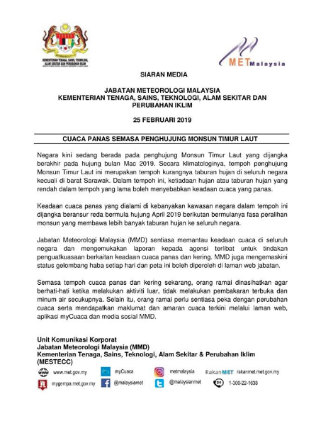 Malaysia’s meteorological agency (MetMalaysia) confirmed that hot temperatures are to be expected from now into May. This comes after 10 areas of the country were officially declared to be on heatwave alert this week.