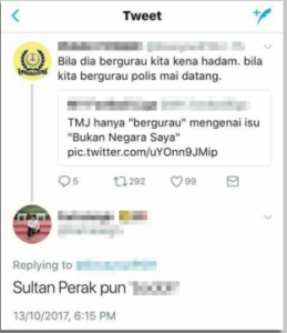 As tempers flared, the boy used a series of words that insulted the Sultan of Perak, and he quickly found himself on the wrong side of the law.