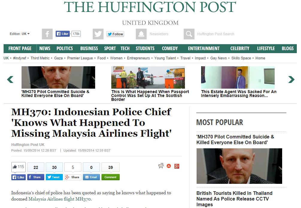 Just so no one says we’re burying the lede here: The Huffington Post‘s UK edtion published a story detailing how Indonesia’s chief of police claims to know what happened to missing Malaysia Airlines Flight MH370.