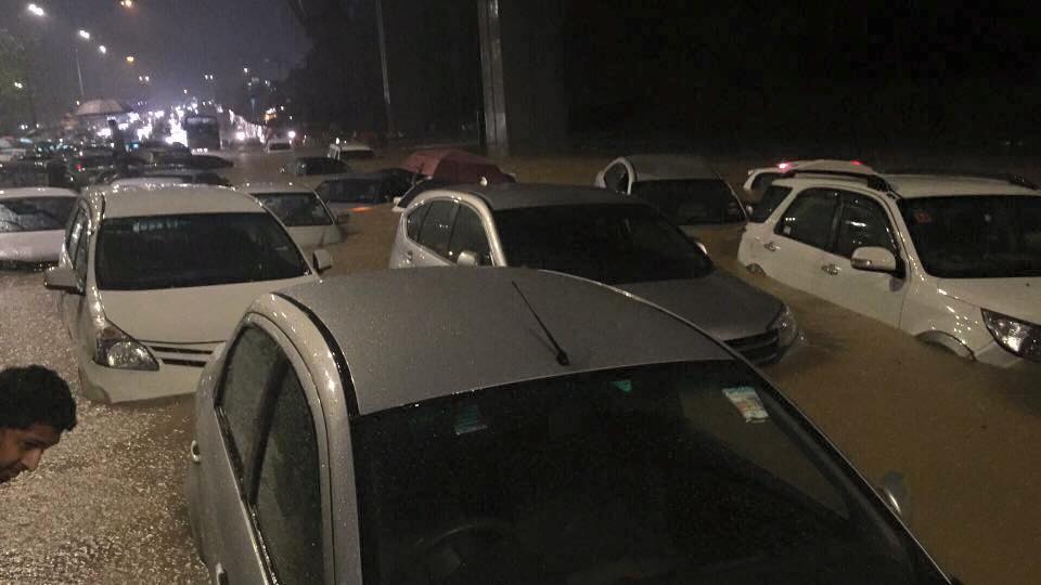 Heavy back to back thunderstorms culminated in a massive flash flood — dubbed by one news report as the ‘worst flash floods in 30 years’ —that partially submerged several areas in the city on May 12, resulting in traffic chaos that looks like this: