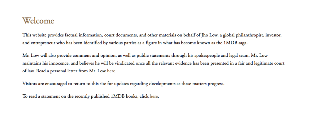 Ladies and Gentlemen, may we present to you www.jho-low.com, your one-stop-shop for all things Jho, straight from Mr. Low, without any of that one-note noise from legitimate news outlets.