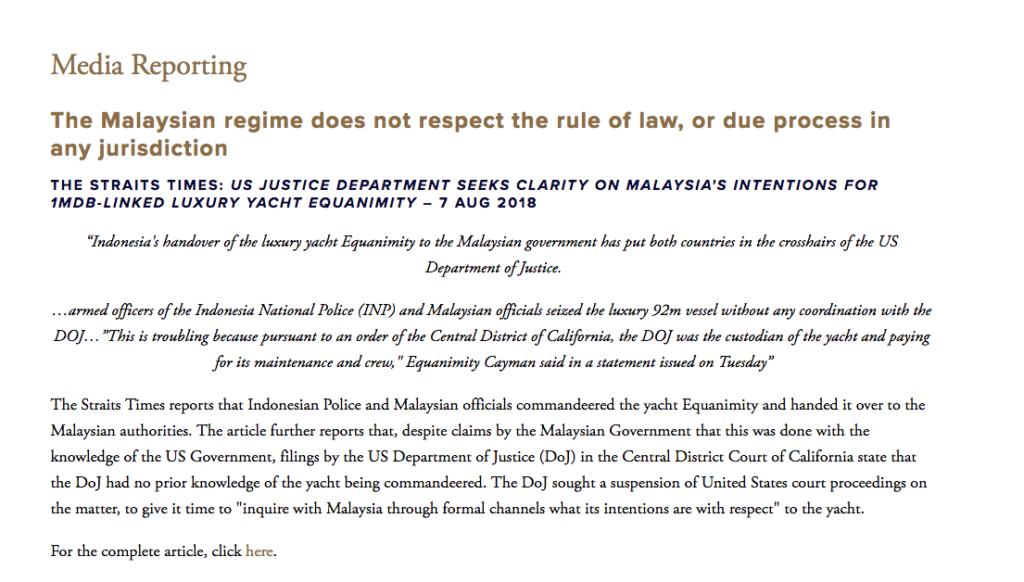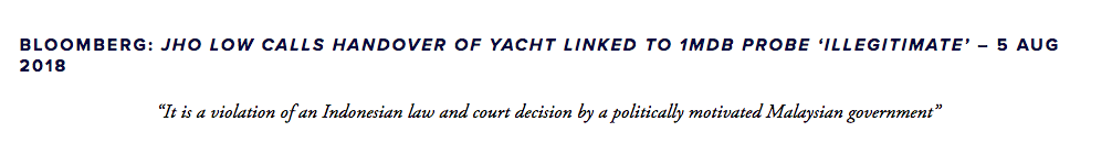 Curious about the various motions to dismiss sundry suits against him? Jho’s got a section for that, too! There, you’ll also find his lawyers’ dispute of translations of United Arab Emirates legalese, that ruling that a South Jakarta court had over the seizure of (not his!) yacht, as well as a Najib-era document from his then-newly appointed attorney general closing Bank Negara’s investigation into 1MDB.