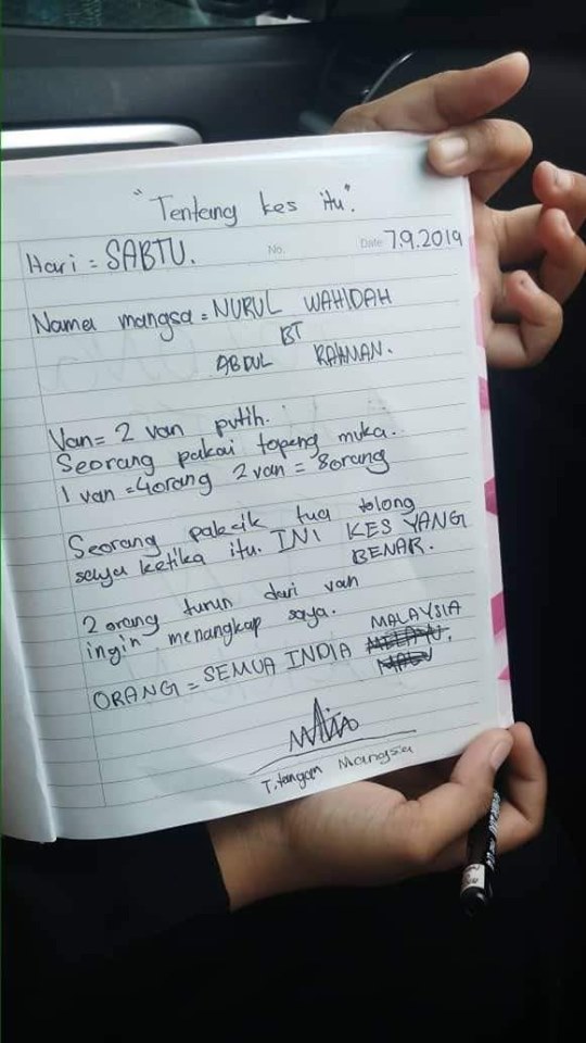 Her ordeal was chronicled on social media, where the girl’s handwritten note over the “kidnapping” claimed that two men wearing masks tried to forcibly take her from outside the school, with an elderly man coming to the rescue.