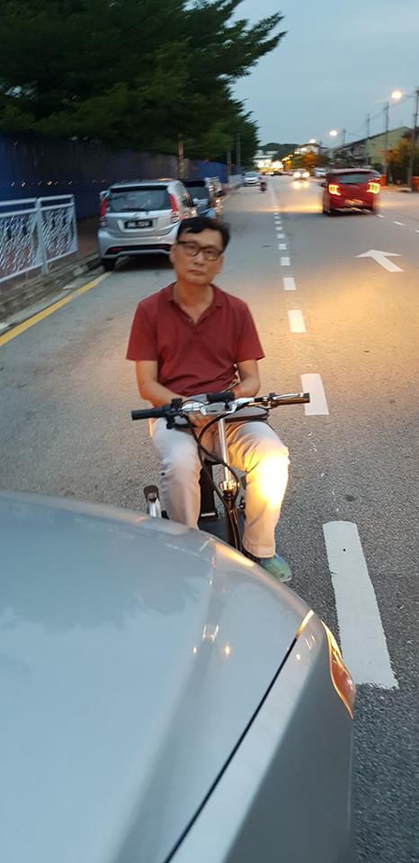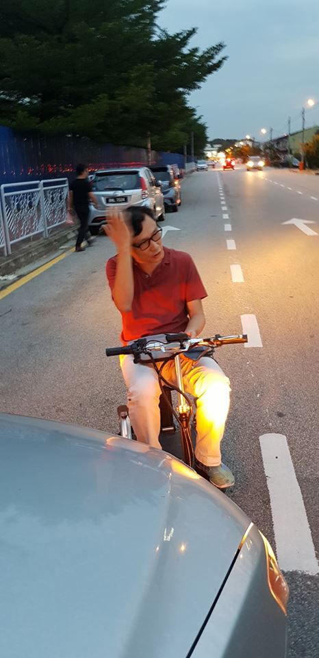 Ng Jhen Hau posted a video and accompanying photographs to his Facebook account earlier this week, alleging that a man driving an electric scooter intentionally cut into the opposing lane, and attempted to knock into his car.